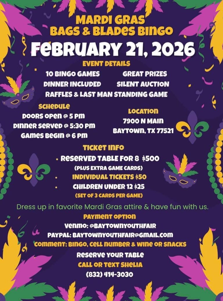 7900 NORTH MAIN | BAYTOWN, TX 77521 | BaytownYouthFair@gmail.com